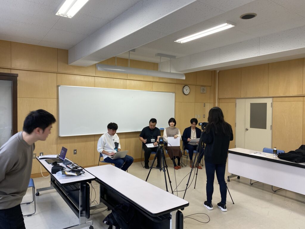 まずは大人たちが別室にあつまり、各教室の生徒たちとオンラインで繋いで自己紹介&企画内容説明。